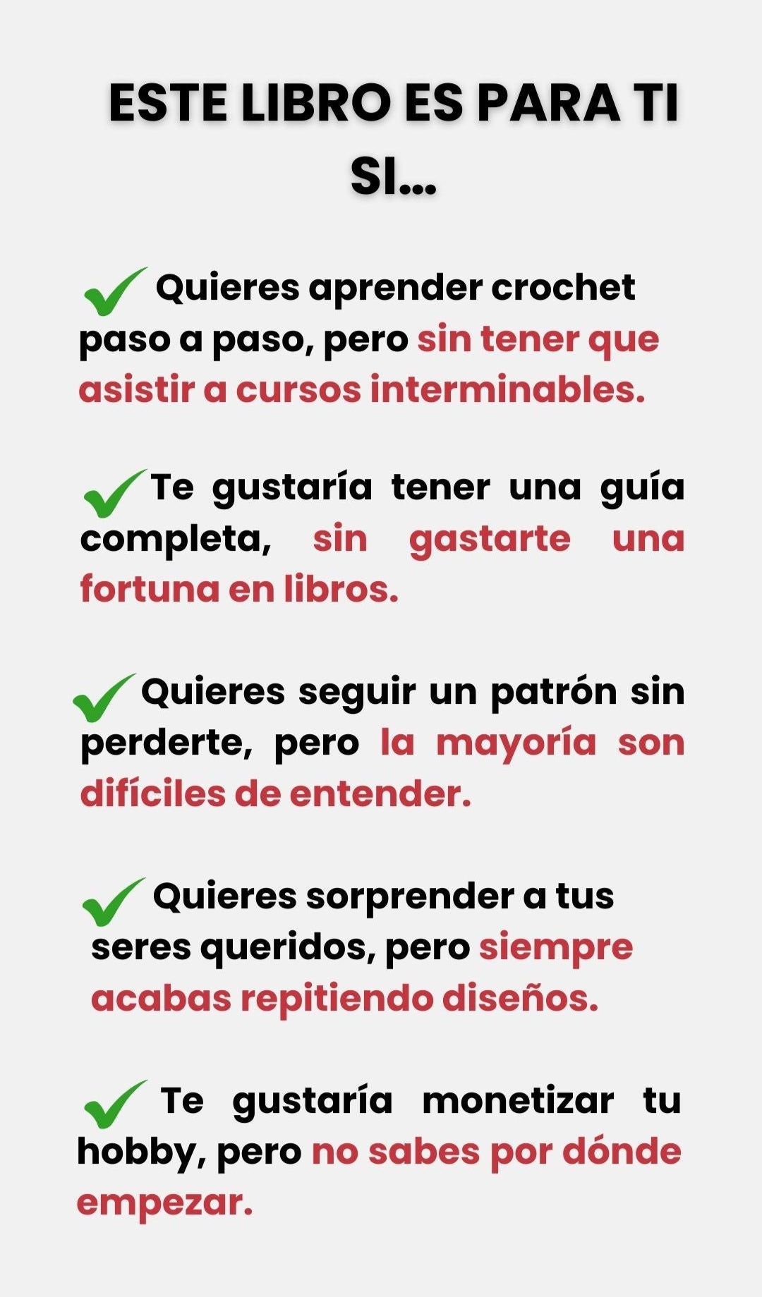 ¡Para nada! 🧶 Este libro es tu compañera perfecta, tanto si nunca has tocado una aguja como si ya eres una experta. Cada patrón te guía paso a paso, sin confusiones ni jerga complicada.